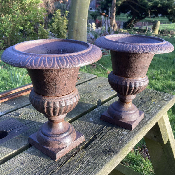 Cast Iron Pair Of Small Urns Metal Garden Planters Ferney Heyes Garden Products