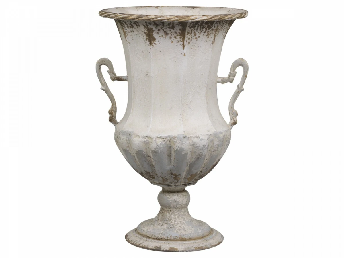Large French Metal Urn Rustic Planter With Handles Antique Cream Shabby Chic Ebay
